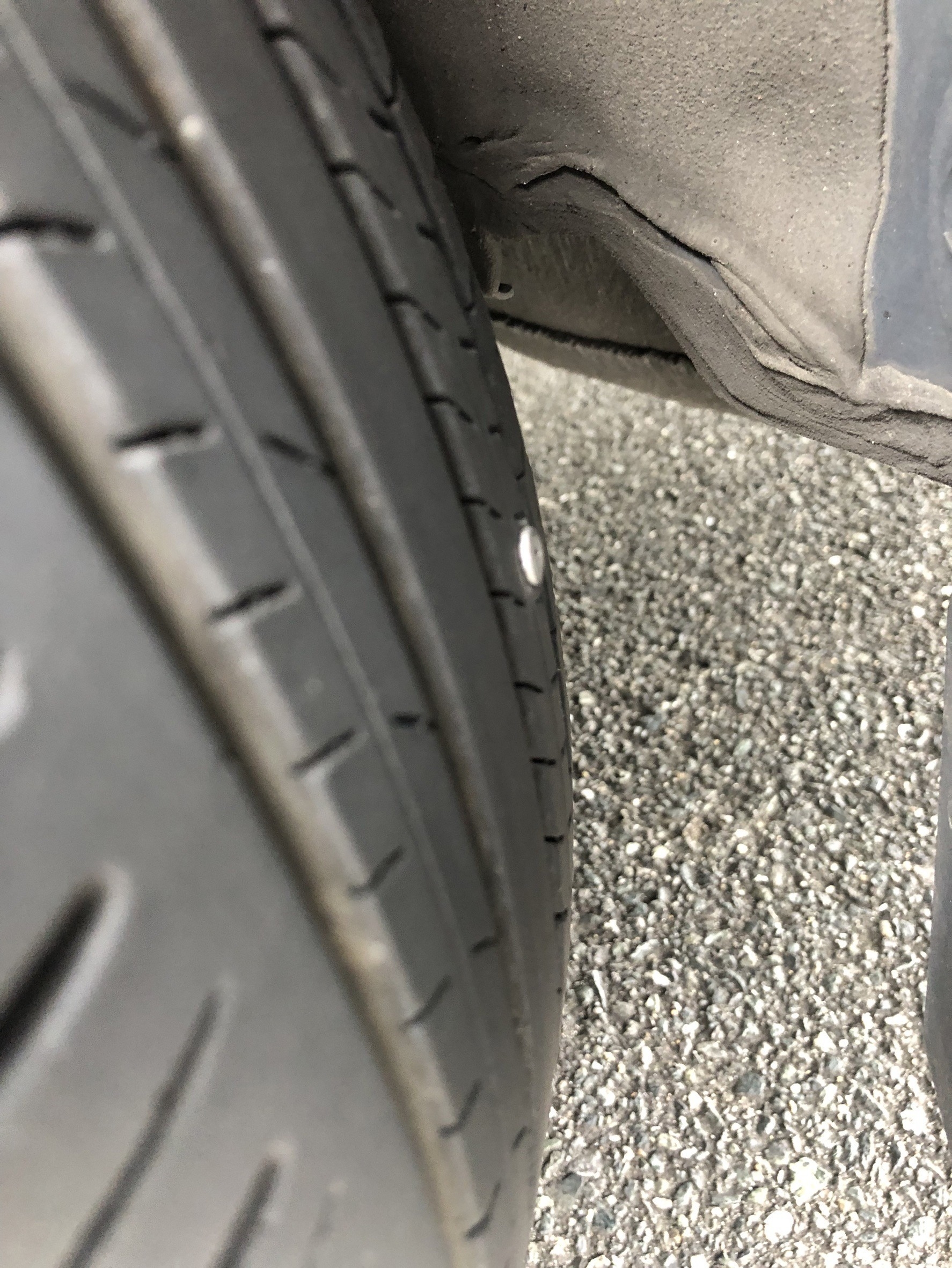 一体いつ刺さったのか・・高速道路にこの状態で乗っていたかもしれないと思うとゾっとします。