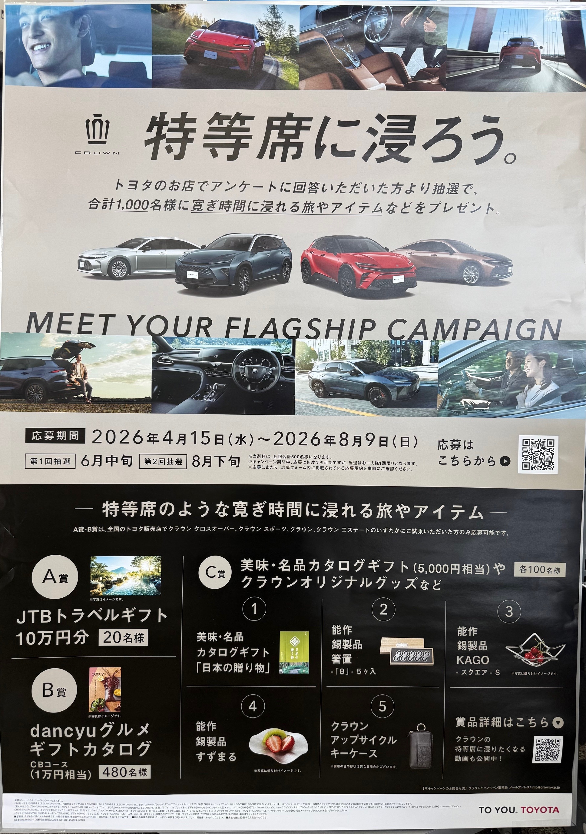 クラウンのご試乗をされた方のみ応募可能で抽選で1000名の方に賞品が当たります。
